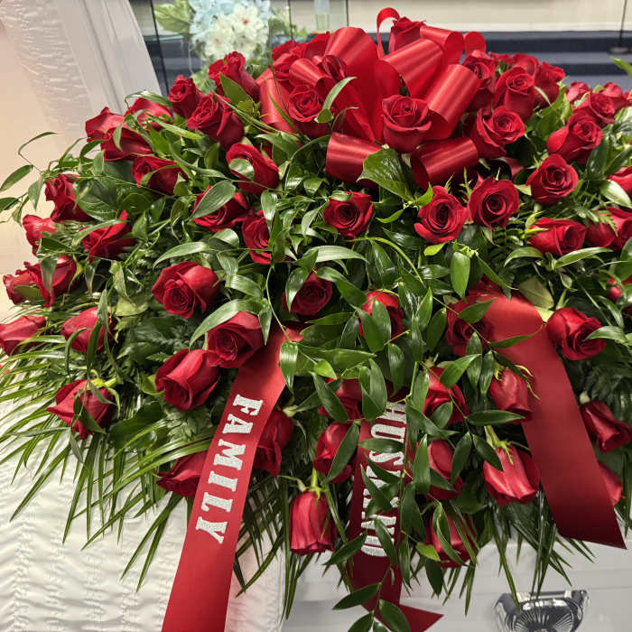 Price: $650.00All Red Rose Casket Spray